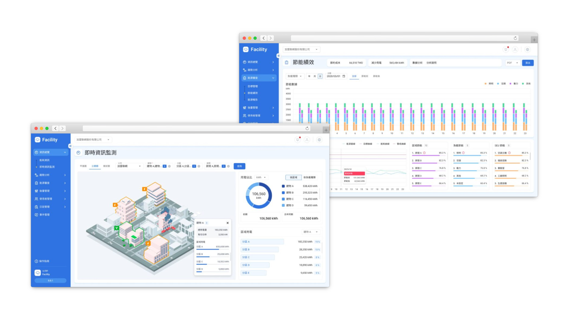 加雲聯網的 Facility 是專為工廠、醫院、商辦大樓等用電場域打造的智慧能源管理系統,協助企業制定最佳契約容量、降低用電成本,並即時掌握能耗重點與用電異常狀況。